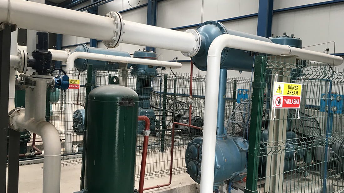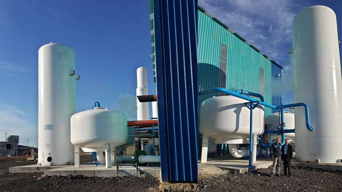 Кислородные установки VPSA, которые являются наиболее эффективным методом производства кислорода, создаются с использованием оборудования, пригодного для работы в режиме 24/7. Воздух низкого давления, производимый воздуходувкой, сначала охлаждается и осушается. В резервуары VPSA направляется относительно сухой воздух, температура которого падает до средних значений. Воздух, который направляется снизу вверх по слоистой структуре в резервуарах, сначала проходит через первые молекулы, отделенные от молекул CO2 и влаги, и здесь становится полностью сухим. Во втором слое молекулы кислорода разделяются, а молекулы азота удерживаются за счет использования разницы в молекулярной структуре с помощью высокоэффективных и долговечных молекул цеолита. В верхнем и последнем слое поток регулируется, и теперь образуется кислородный газ. Для каждой молекулы в резервуарах существует определенное время насыщения, по завершении этого периода свежий воздух нагнетателя направляется в другой резервуар. С другой стороны, резервуары, заполненные азотом и влагой, вступают в процесс регенерации с помощью вакуумного нагнетателя, а отработанные газы и влага удаляются в воздух. Другими словами, два резервуара работают друг с другом в тандеме, и обеспечивается непрерывный поток газообразного кислорода. Произведенный газообразный кислород хранится в резервуаре, он направляется в кислородный компрессор в соответствии с потребностями приложения и подается на предприятие путем увеличения требуемого давления.