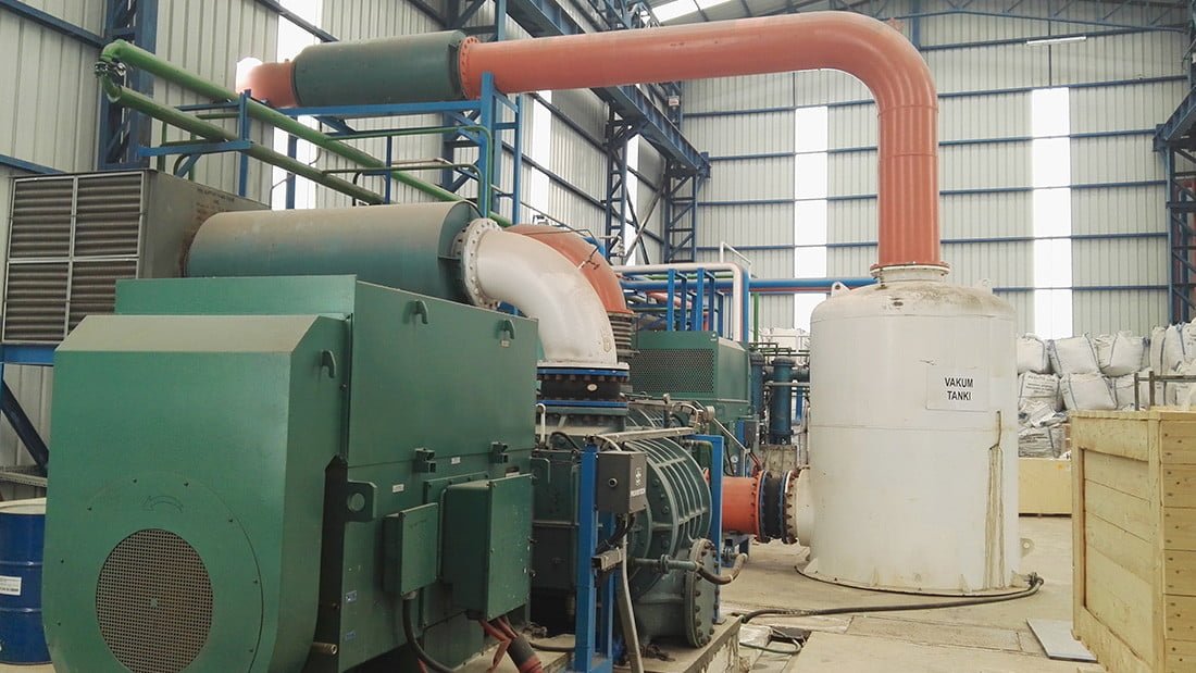 Корневая воздуходувка и вакуумный насос создают среду с низким давлением 0,49 кПа. В отличие от систем с компрессорами, самым большим преимуществом работы при низком давлении является низкое потребление энергии. Таким образом, оборудование системы не попадает в класс сосудов высокого давления и легко устанавливается на заводе.