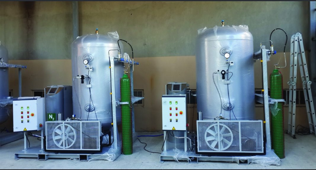 Генератор азота для Туркменбашинского НПЗ. Генератор азота GN-1200 производительностью 55 м3/ч. Рабочее давление 8 бар. Чистота 99,995%. Станция оборудована бустерами для заправки баллонов азотом с давлением 200 бар.